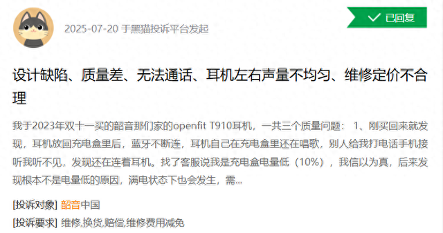 韶音耳机被曝设计缺陷,质量差且维修定价不合理