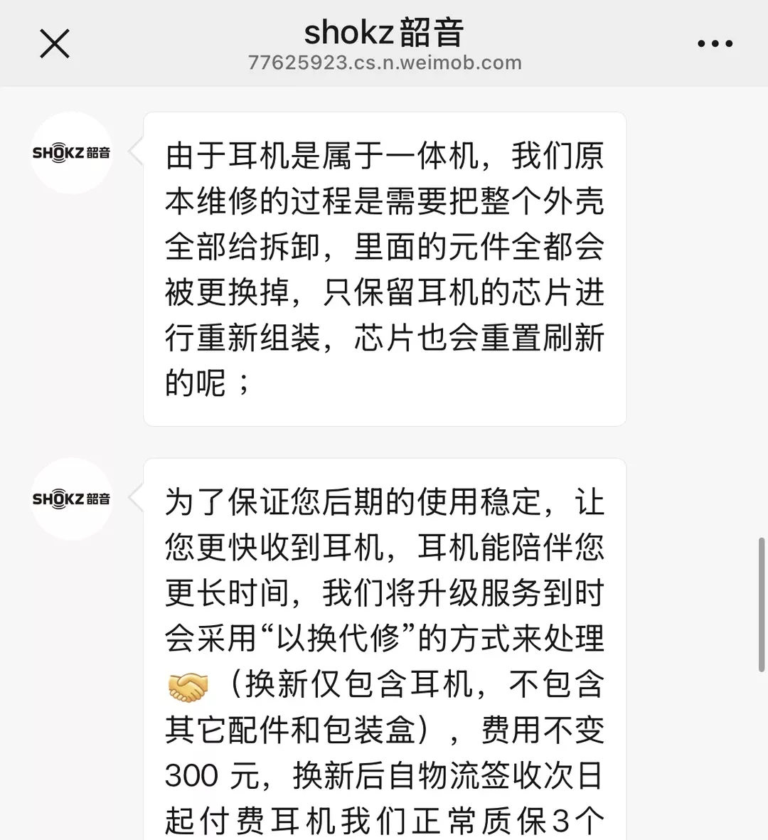 韶音骨传导耳机又又断了,两年前也是同样的位置断裂,当时找售后以400元以换代修换了一个同型号同色耳机, ...