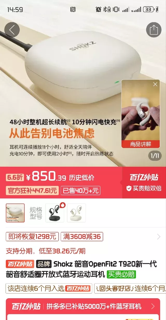 耳机失踪以后买的OPPO Enco X3,刚刚好赶上湖北国补,就让朋友帮忙带了一个,价格很香。加上返利返京豆,7 ...