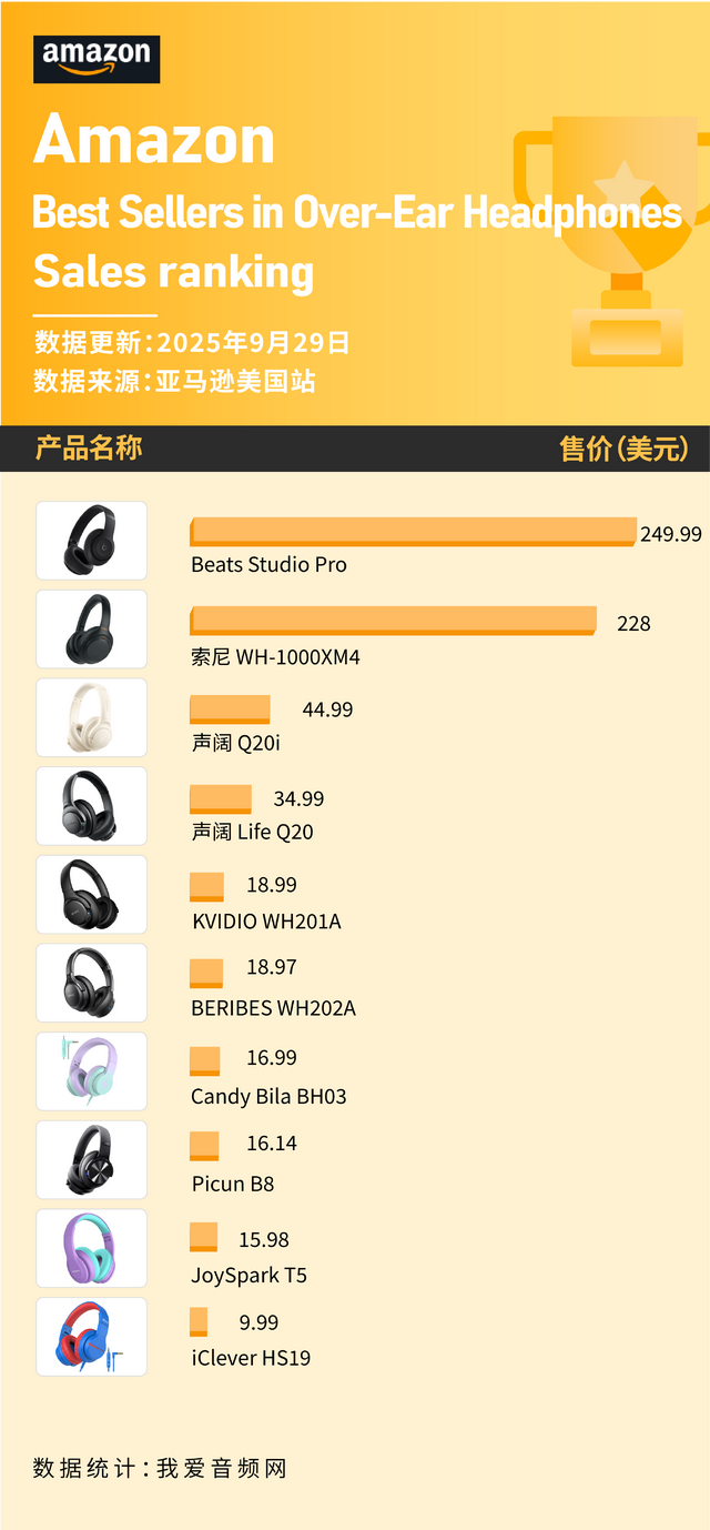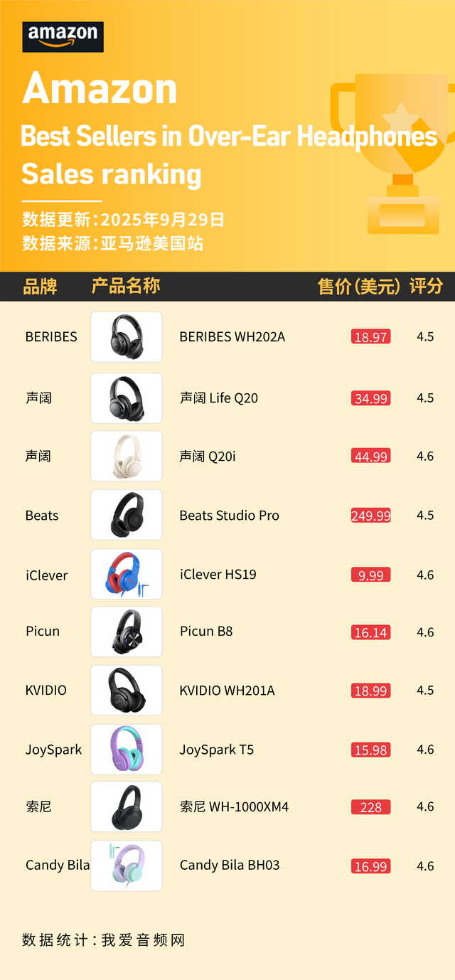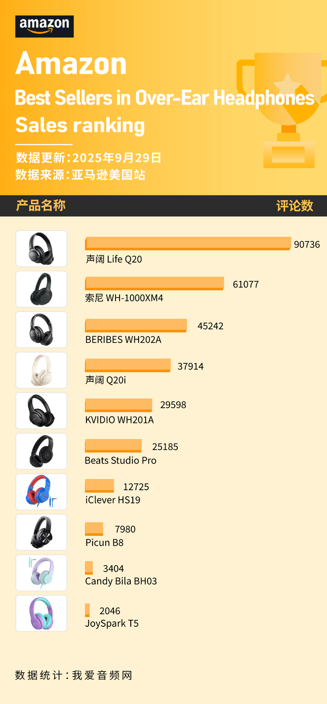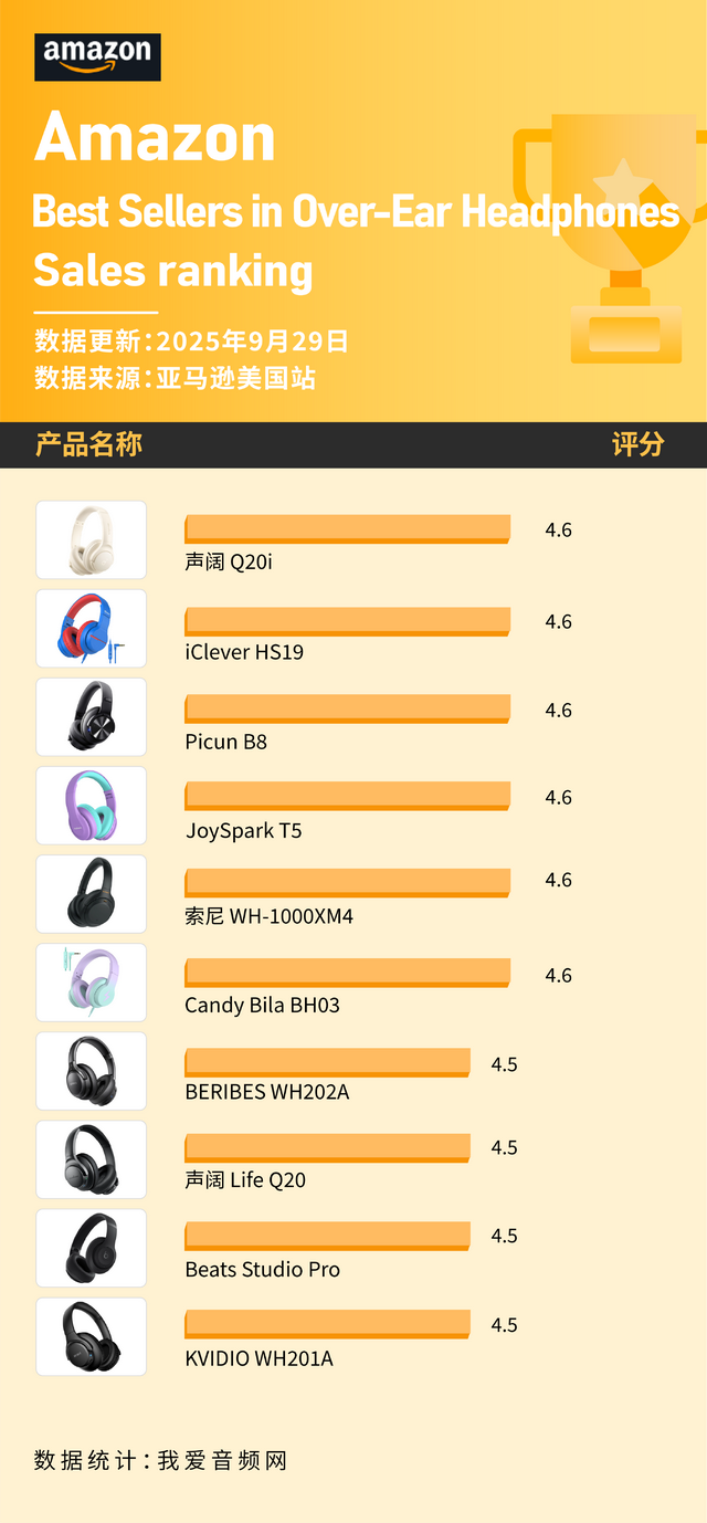 声阔2款上榜 这些头戴耳机在9月美国亚马逊卖爆!
