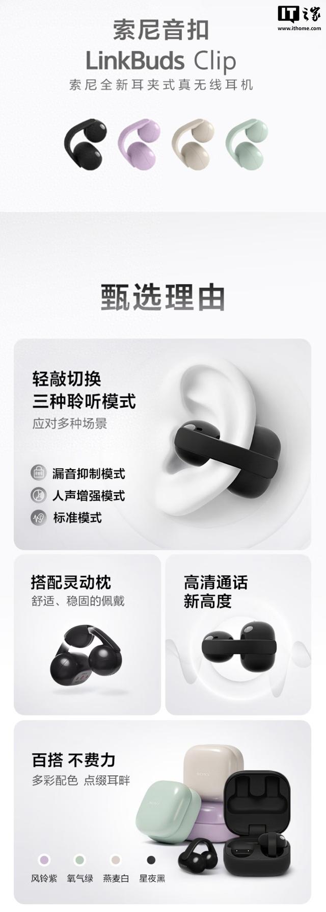 1299元,索尼LinkBuds Clip耳夹耳机国行发售