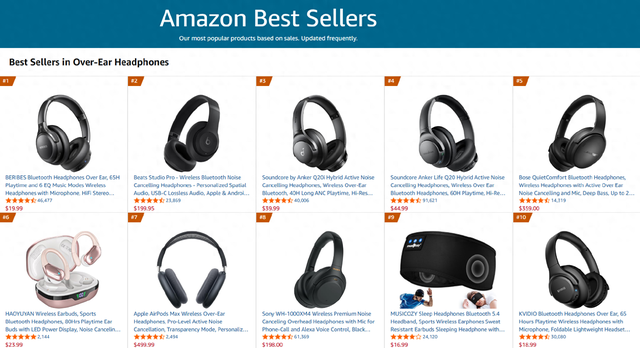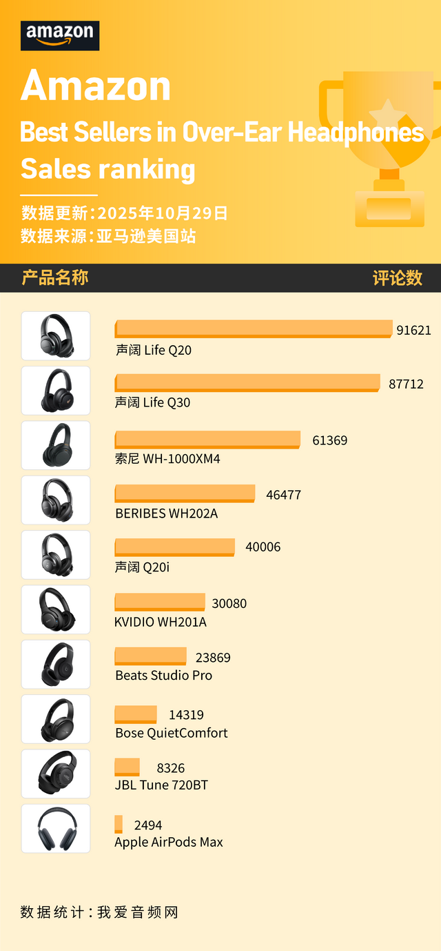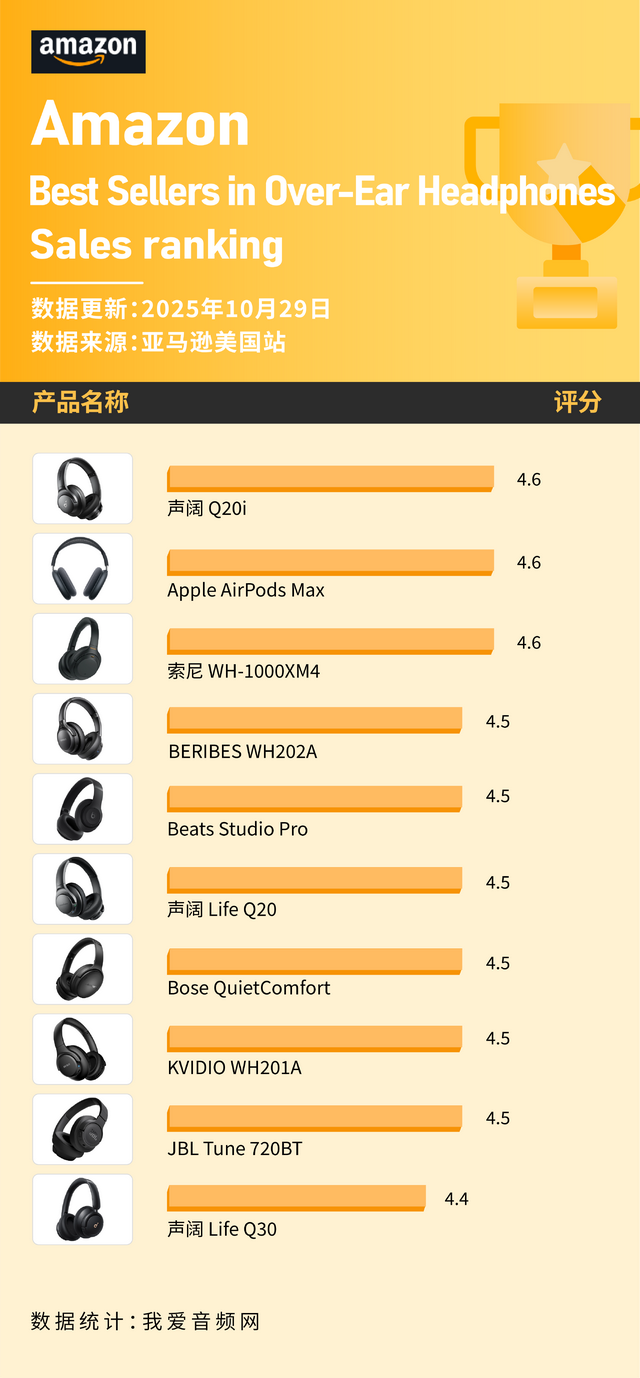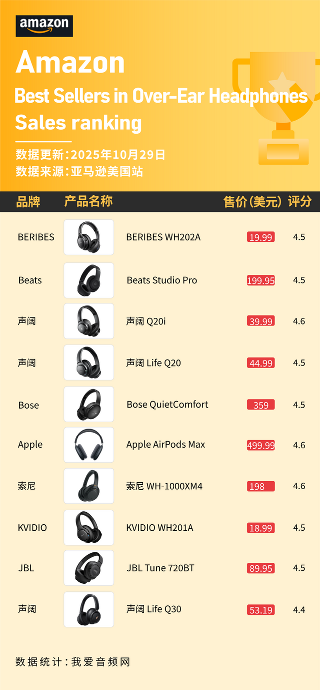 声阔3款上榜 这些头戴耳机在10月美国亚马逊卖爆!