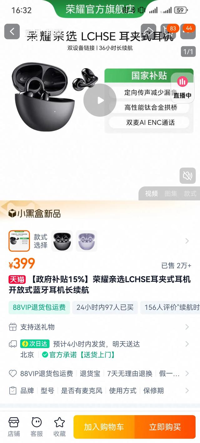 对标千元旗舰?荣耀Earbuds开放式耳机曝光,7.9g超轻+22小时续航