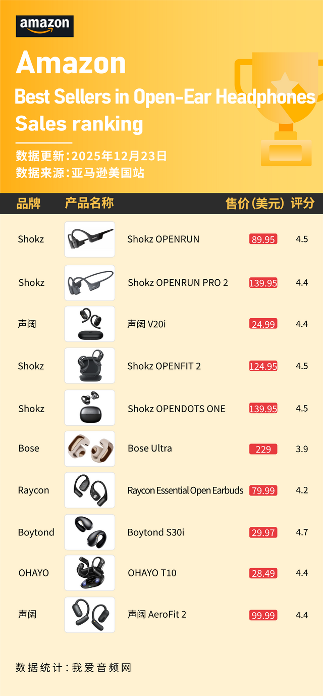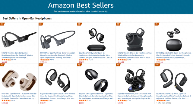韶音、声阔、Bose上榜 这些开放式耳机在12月美国亚马逊卖爆!