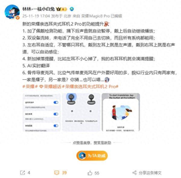 荣耀亲选LCHSE耳夹式耳机2 Pro即将发布