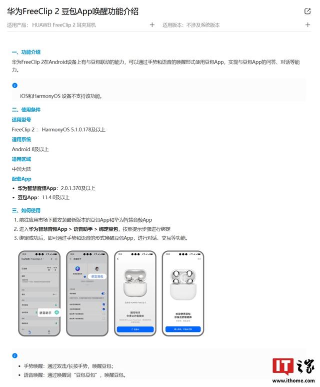 IT之家 1 月 25 日消息,华为官网显示,华为 FreeClip 2 耳夹耳机在 Android 设备上有与豆包联动的能力,可 ...