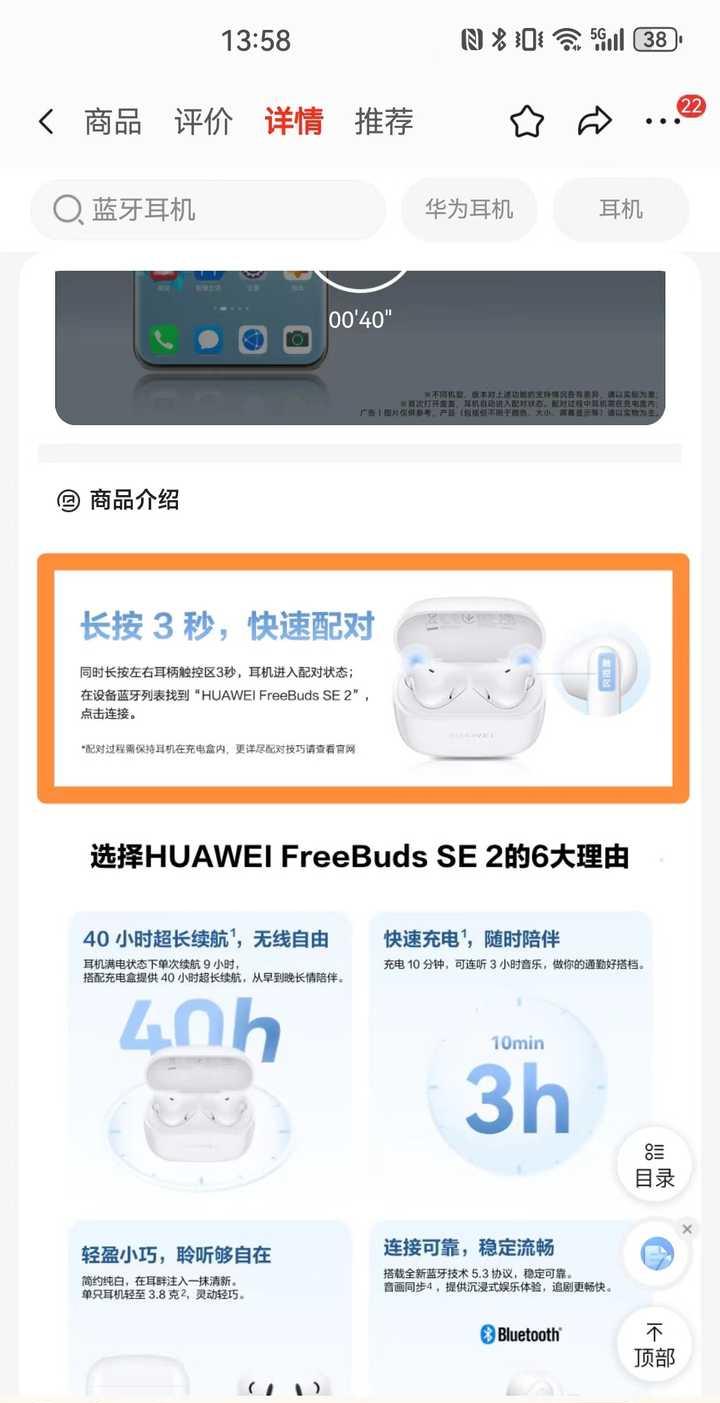 1、华为FreeBuds SE 2蓝牙耳机重置连接 华为FreeBuds SE 2蓝牙耳机,无功能键,首次配对时,刚开箱拿出耳 ...