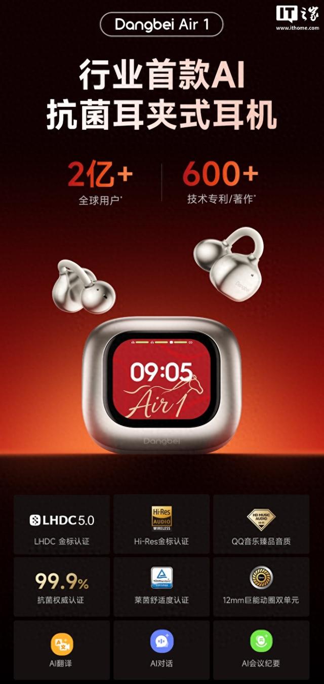 IT之家 1 月 22 日消息,当贝今日官宣发布行业首款 AI 抗菌耳夹式耳机 —— Dangbei Air 1,该机配备 12mm ...